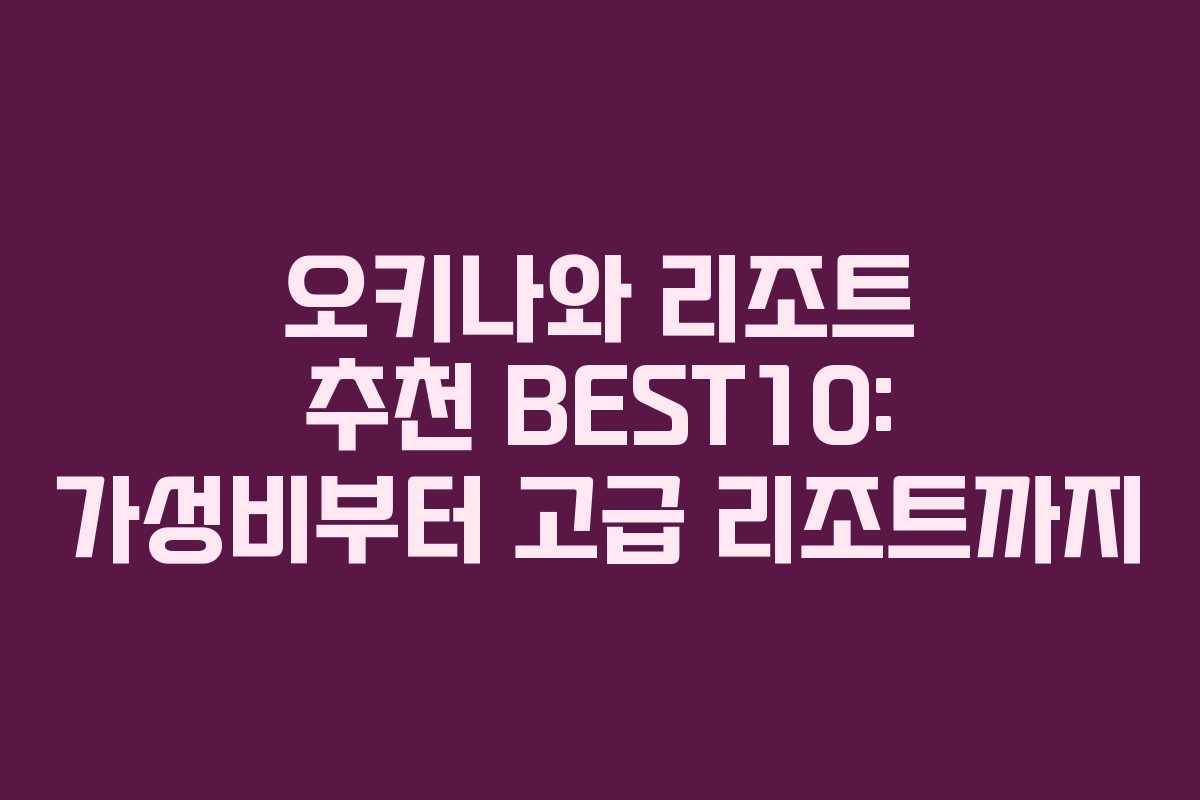 오키나와 리조트 추천 BEST10: 가성비부터 고급 리조트까지