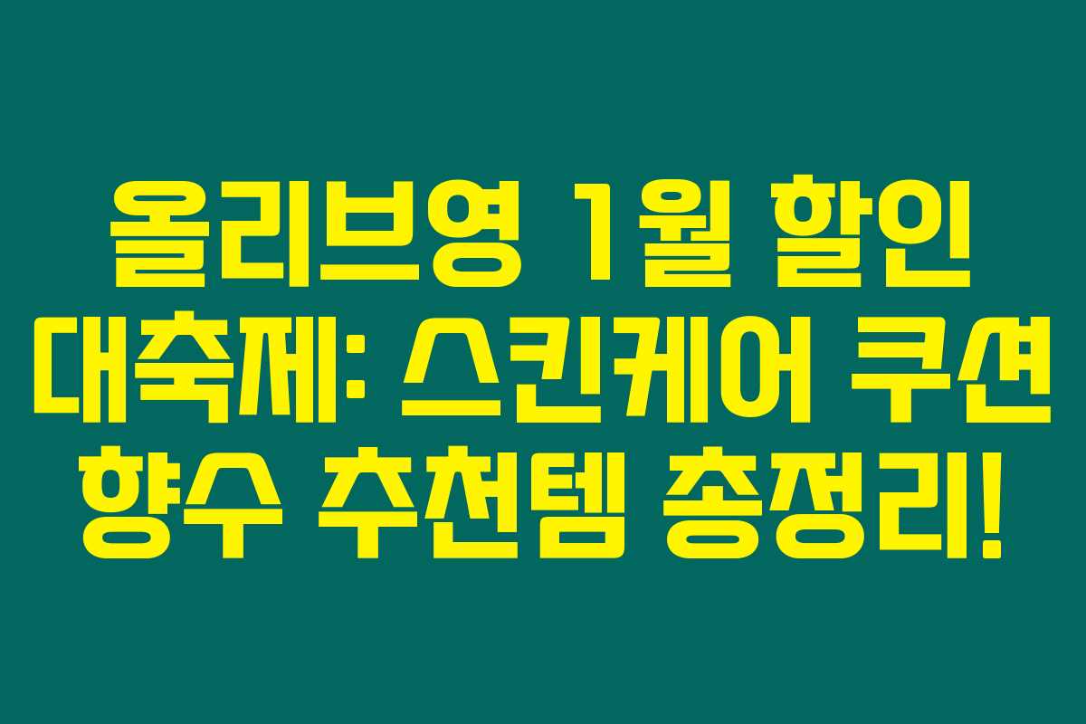 1월에 올리브영에서 진행되는 할인 대축제는 정말 놓칠 수 없는 기회랍니다. 특히 이번에는 스킨케어와 쿠션, 그리고 향수까지 다양한 아이템들이 할인혜택을 받을 수 있어요. 올리브영에서 인기템을 미리 챙기고, 알찬 쇼핑을 즐길 수 있는 꿀팁을 알아볼까요?