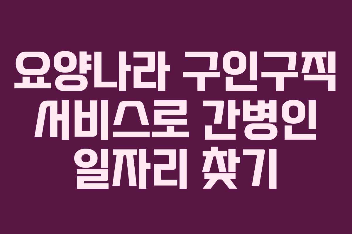 요양나라 구인구직 서비스는 요양보호사 및 간병인을 위한 전문 플랫폼으로, 다양한 일자리 정보를 제공하여 많은 이용자에게 사랑받고 있습니다. 이 글에서는 요양나라를 통해 간병인 일자리를 찾는 방법에 대해 알아보겠습니다.