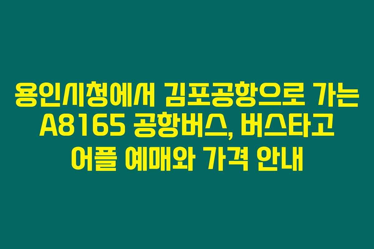 여행을 계획하면서 교통편이 가장 중요한 요소 중 하나라는 사실, 다들 공감하시죠? 특히 공항으로 가는 길은 여러모로 신경이 많이 쓰이는데요, 용인시청에서 김포공항까지 가는 A8165 공항버스를 이용하는 방법과 탑승장소, 그리고 예약 방법을 알려드릴게요. 아래를 읽어보시면, 보다 편리하게 여행을 준비할 수 있을 거예요.