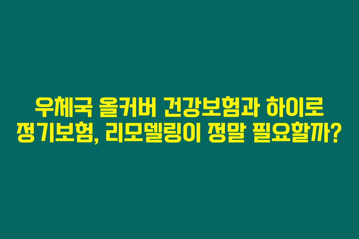 우체국 보험에 가입하신 이후 수많은 고민을 겪고 계신가요? 여러분처럼 보험료와 보장의 가치에 대한 의문이 드는 분들이 많습니다. 그럼 올커버 건강보험과 하이로 정기보험을 리모델링하는 것이 과연 현명한 선택일까요? 아래를 읽어보시면 귀하의 상황에 맞는 최선의 해결책을 찾을 수 있을 것입니다.