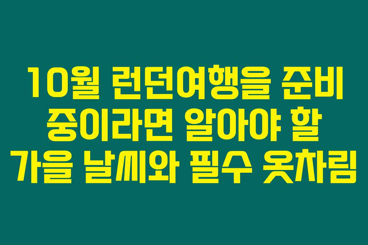 이제 10월 런던여행 준비가 한층 수월해지셨을 거예요. 가을의 아름다운 풍경을 만끽하며 추억을 쌓아보세요. 준비물만 잘 챙기면 어느새 런던의 매력에 흠뻑 빠지게 될 거예요!