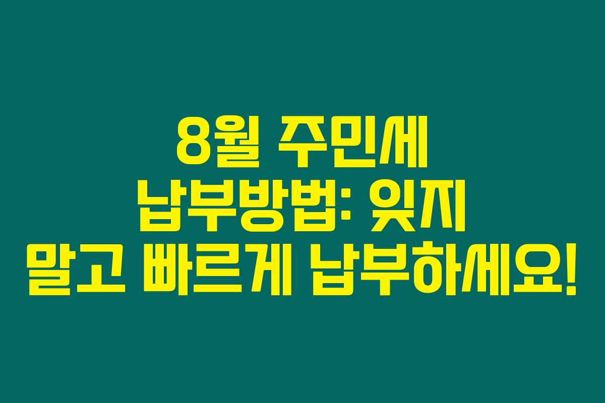 주민세를 빠르게 납부하는 방법에는 여러 가지가 있어요! 절대 놓치지 않도록 아래를 체크해보세요.