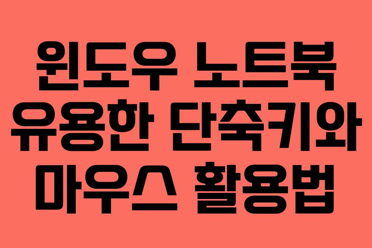 윈도우 노트북을 사용할 때, 효율적인 작업을 위해 유용한 단축키와 마우스 활용법을 알면 큰 도움이 됩니다. 이 글에서는 속도와 성능을 향상시키고, 설정을 빠르게 조작할 수 있는 5가지 꿀팁을 소개합니다.