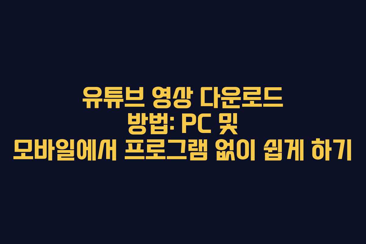 유튜브에는 수많은 영상이 있지만, 광고 없이 개인적으로 소장하고 싶은 영상도 많습니다. 유튜브는 기본적으로 영상 다운로드 기능을 지원하지 않기 때문에 외부 웹사이트나 프로그램을 통해 다운로드해야 합니다. 본 글에서는 PC와 모바일에서 프로그램 없이 유튜브 영상을 고화질로 다운로드하는 방법을 소개하겠습니다.