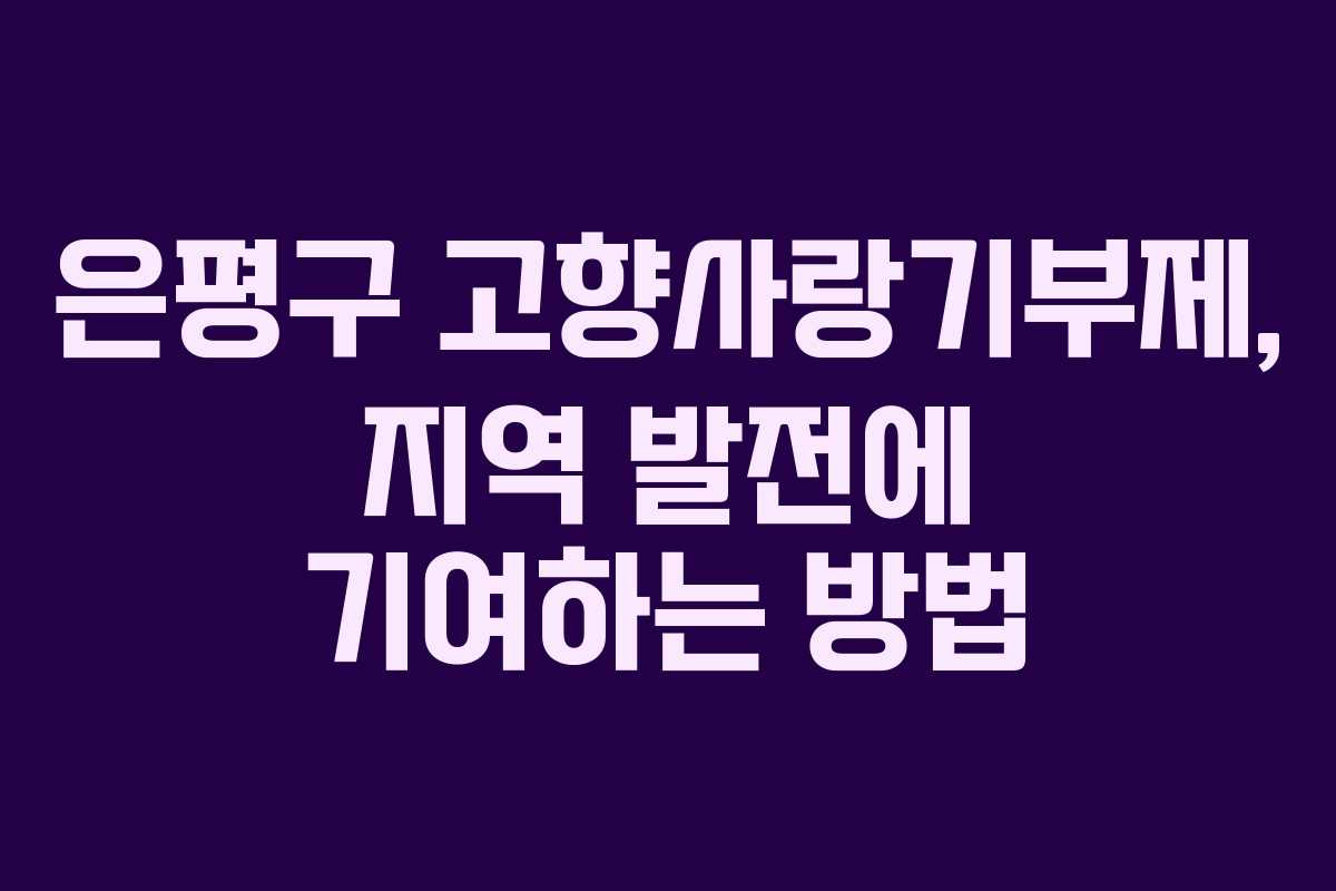 고향사랑기부제는 개인이 현재 거주하는 주소지를 제외하고, 자신의 고향이나 원하는 지자체에 기부함으로써 세액 공제와 답례품의 혜택을 받을 수 있는 제도입니다. 이 기부금은 지역 주민의 복리 증진과 문제 해결, 지역 활성화를 위해 사용됩니다. 은평구에 기부하면 답례품을 통해 지역 특산품을 받고 지역 발전에도 기여할 수 있습니다.