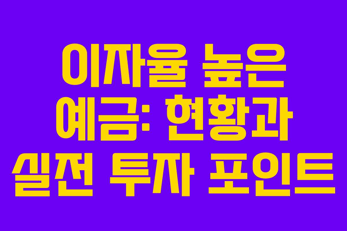 이자율 높은 예금: 현황과 실전 투자 포인트