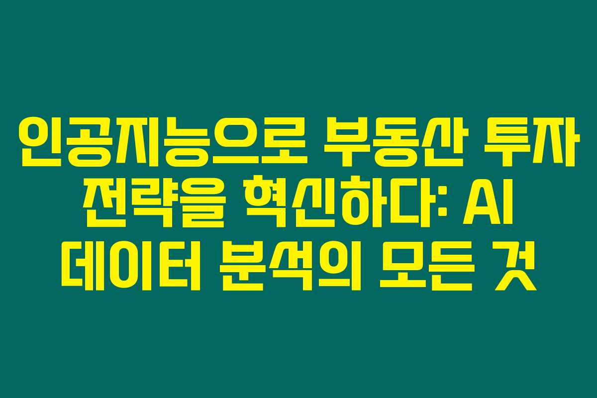 - ### AI 데이터 분석이 부동산 투자에서 어떻게 활용되나요?