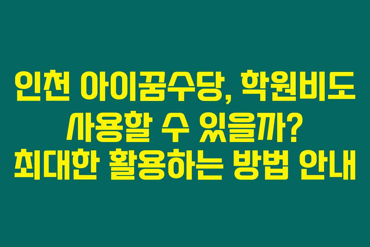 제가 직접 체크해본 바로는 인천 아이꿈수당은 아이를 양육하는 가정에 큰 도움이 될 수 있는 제도입니다. 하지만 이 아이꿈수당이 학원비에 사용 가능한지에 대한 궁금증이 많으실 텐데요. 아래를 읽어보시면, 아이꿈수당의 신청부터 사용 방법, 그리고 학원비 사용 여부까지 상세히 알아보실 수 있습니다.