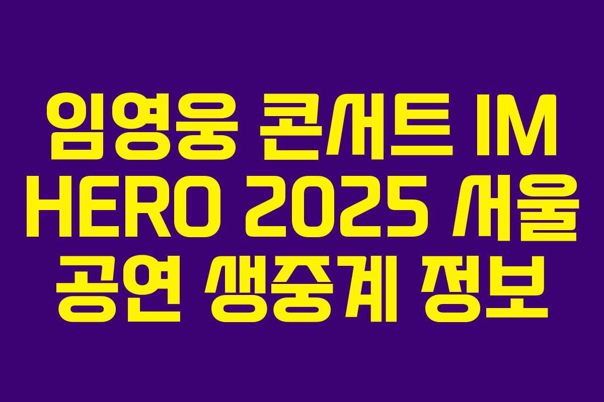 임영웅은 2025년 하반기에 ‘IM HERO 2025’ 전국투어 콘서트를 개최하며 팬들에게 감동을 선사할 예정입니다. 특히, 서울 공연은 생중계 이벤트가 준비되어 있어 많은 이목을 끌고 있습니다. 이번 포스팅에서는 생중계 일정, 티빙 시청 방법, 팬들의 반응 등을 포함한 유용한 정보를 제공합니다.