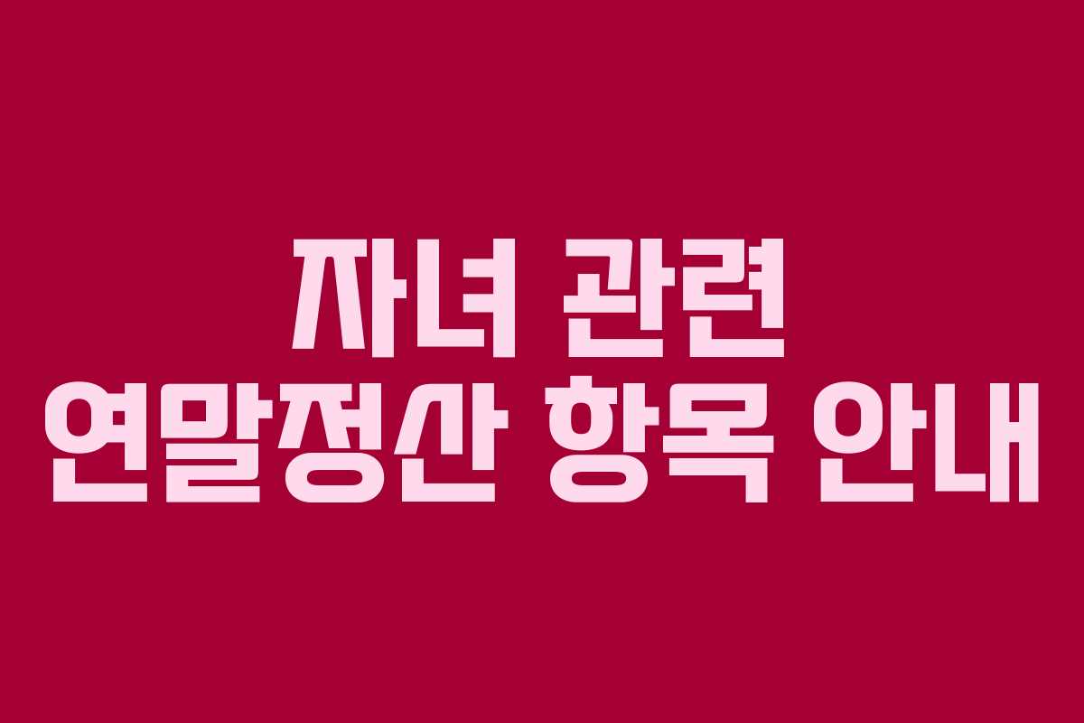 연말정산은 매년 자녀를 둔 부모에게 중요한 과제입니다. 자녀와 관련된 다양한 공제 항목을 활용하여 세액을 절감할 수 있는 좋은 기회입니다. 이번 포스팅에서는 자녀 관련 연말정산 항목과 주의사항을 자세히 살펴보겠습니다.