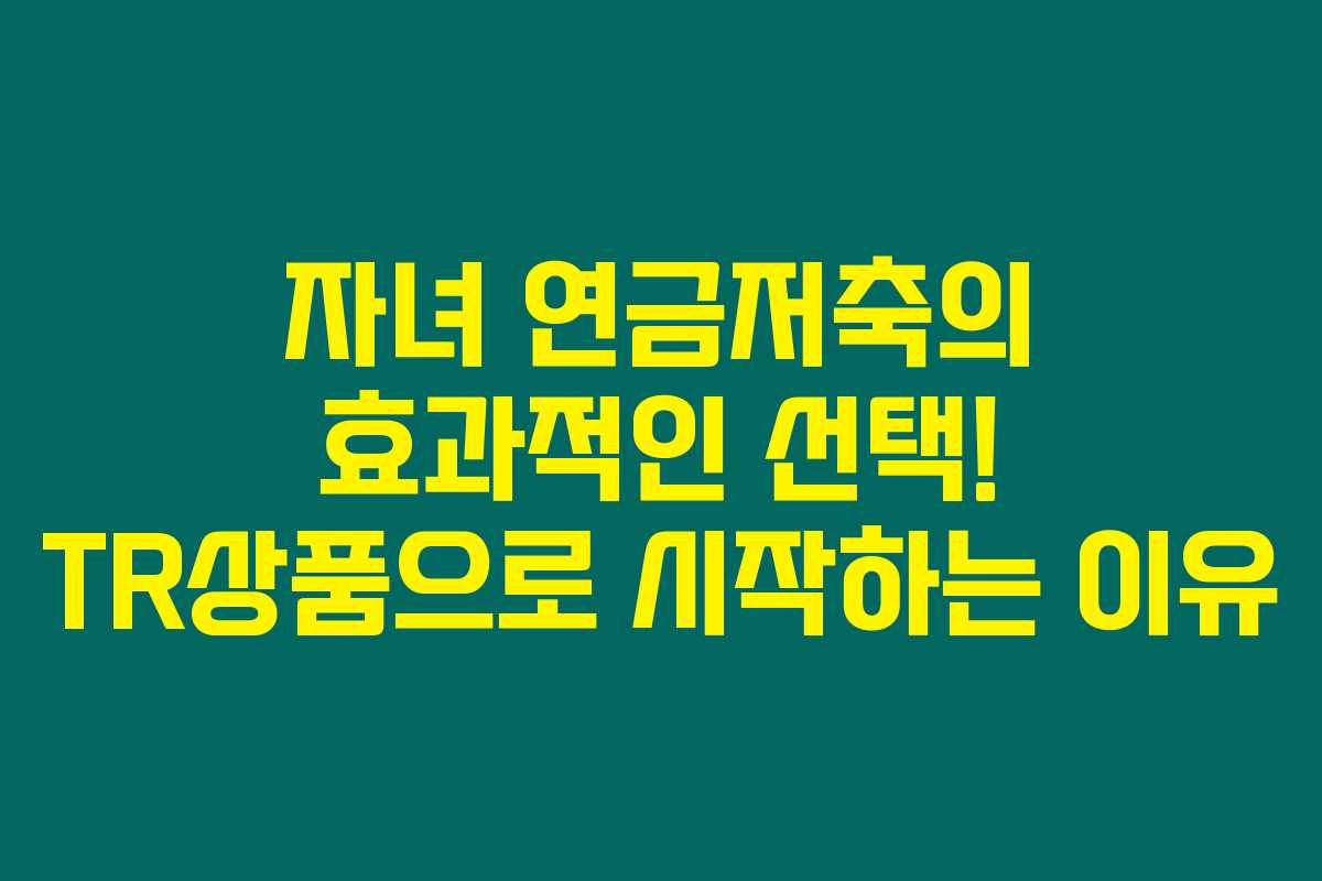 제가 직접 경험해본 결과로는, 자녀를 위한 연금저축에 투자할 때 TR(Total Return) 상품이 아주 유리한 선택이라는 점을 깊이 깨달았어요. 특히 자녀의 미래를 위해 장기적으로 투자할 상품을 고민할 때, TR 상품이 주는 이점 살펴보기 위해 아래를 읽어보시면 도움이 될 것 같아요.