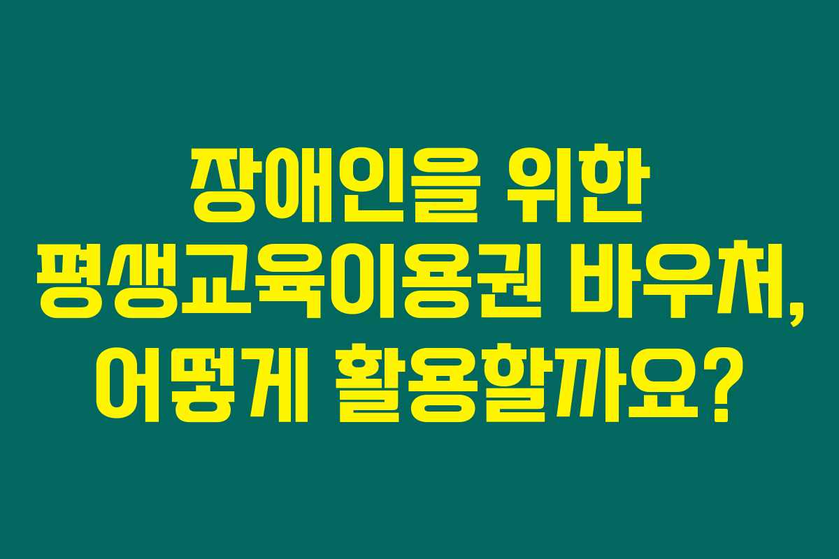 장애인 평생교육이용권은 장애인에게 평생교육 참여 기회를 넓혀 주기 위해 정부에서 지원하는 바우처로, 만 19세 이상의 등록 장애인이 대상이 됩니다. 이 바우처는 2023년부터 시행되었으며, 매년 지원될 가능성이 높다고 합니다.