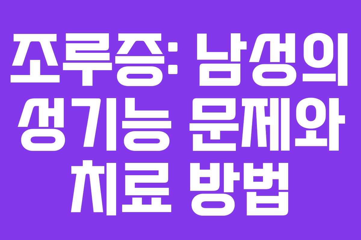 조루증은 남성의 성기능 장애 중 하나로, 성생활의 만족도를 크게 저하시킬 수 있는 질환입니다. 이 글에서는 조루증의 원인, 증상 및 치료 방법에 대해 자세히 알아보겠습니다.