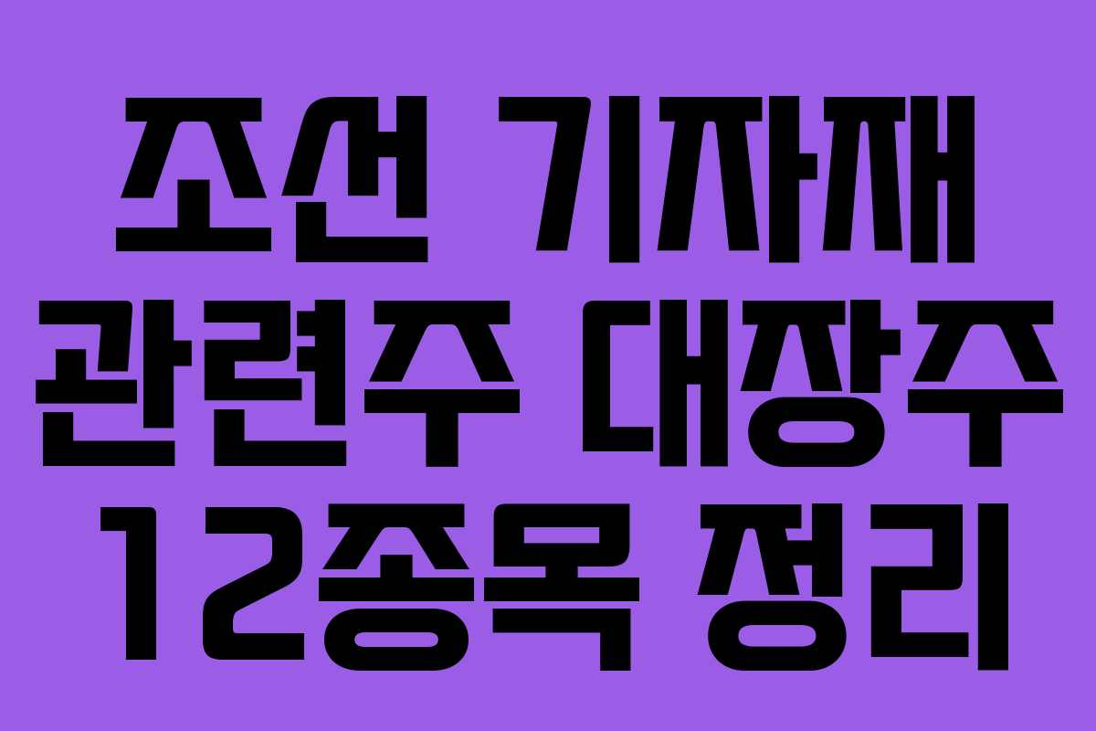 조선 기자재 관련주는 조선업체에 부품 및 기자재를 공급하는 기업들로 구성되어 있습니다. 이번 글에서는 조선 기자재 관련주 중 대장주로 꼽히는 12종목을 소개하고, 각 기업의 특징과 편입 이유를 살펴보겠습니다.