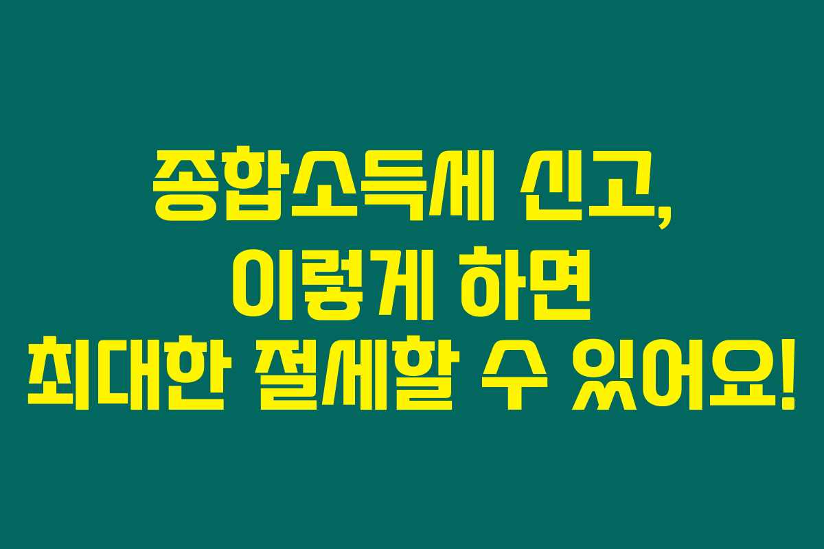 종합소득세 신고, 이렇게 하면 최대한 절세할 수 있어요!