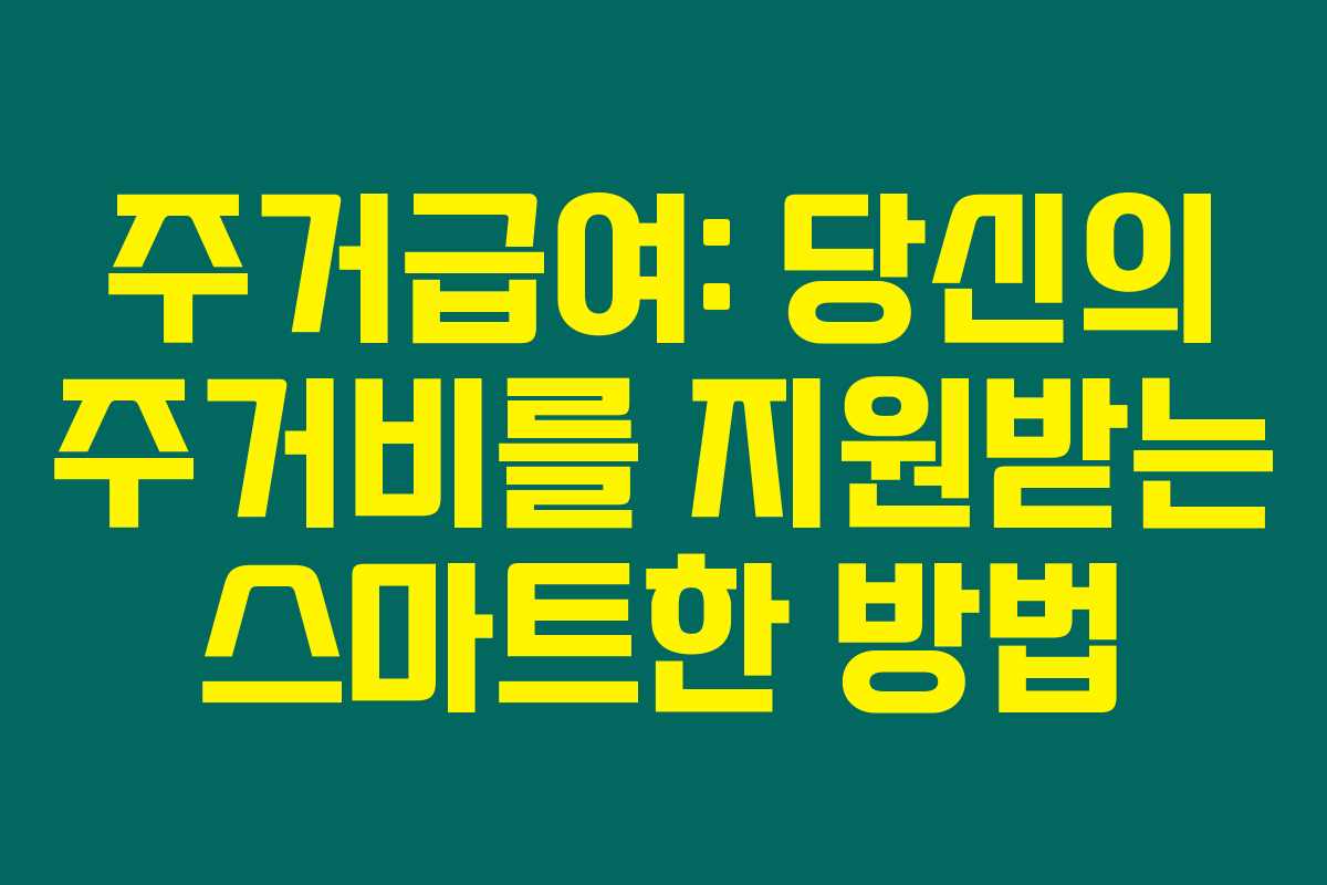 주거급여: 당신의 주거비를 지원받는 스마트한 방법