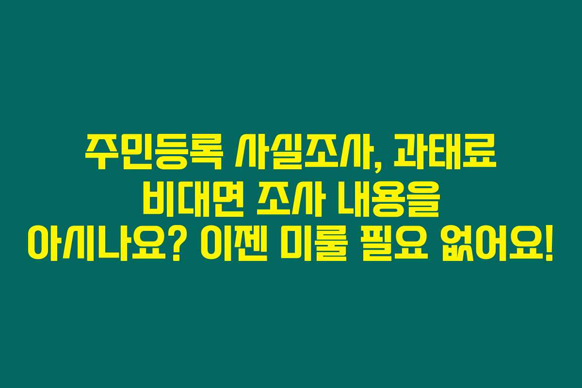 2023년 7월부터 시작된 주민등록 사실조사, 과태료 미참여 시 불이익이 크다는 사실 여러분은 알고 계신가요? 아래를 읽어보시면 이 조사의 중요성과 간편한 비대면 참여 방법에 대해 자세히 알 수 있습니다. 과태료를 피하고 소중한 권리를 챙기기 위해 꼭 확인해 보세요!