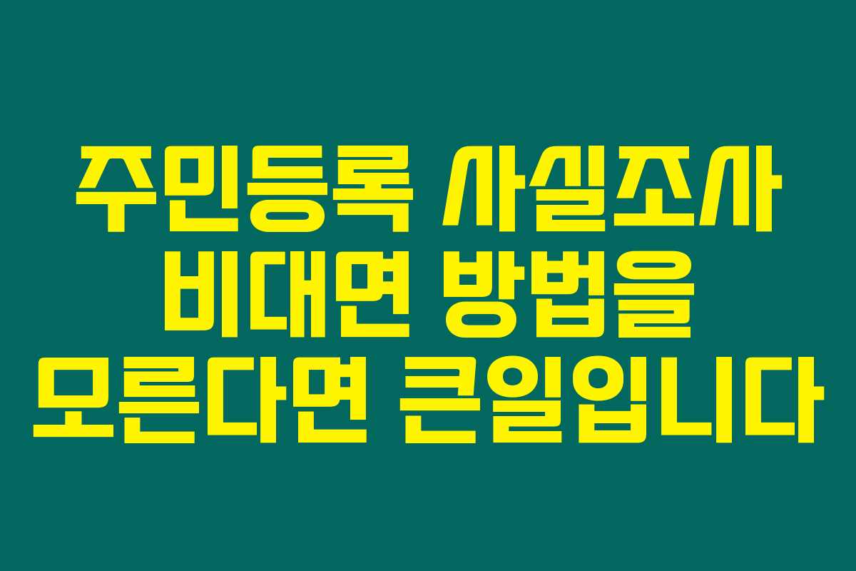 주민등록 사실조사에 대해 궁금하신 분들은 주목해주세요! 만약 주거지에서 몇 분만 시간을 내주신다면 매우 간단하게 비대면으로 조사할 수 있습니다. 여러분이 이 글을 통해 주민등록 사실조사 과정을 이해하고 적절한 준비를 하신다면, 불필요한 불편함을 피할 수 있답니다. 자 그럼, 아래를 읽어보시면 비대면 조사 방법과 과태료에 대해 깊이 있게 알아보실 수 있어요!