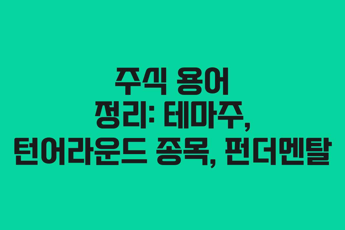주식 투자에 대한 이해를 높이기 위해 필수적인 용어들에 대해 알아보겠습니다. 이번 글에서는 테마주, 턴어라운드 종목, 펀더멘탈의 의미와 특징을 살펴보겠습니다.