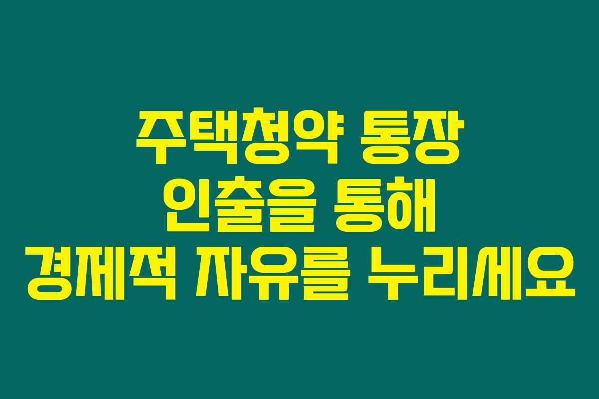 주택청약 통장 인출을 통해 경제적 자유를 누리세요
