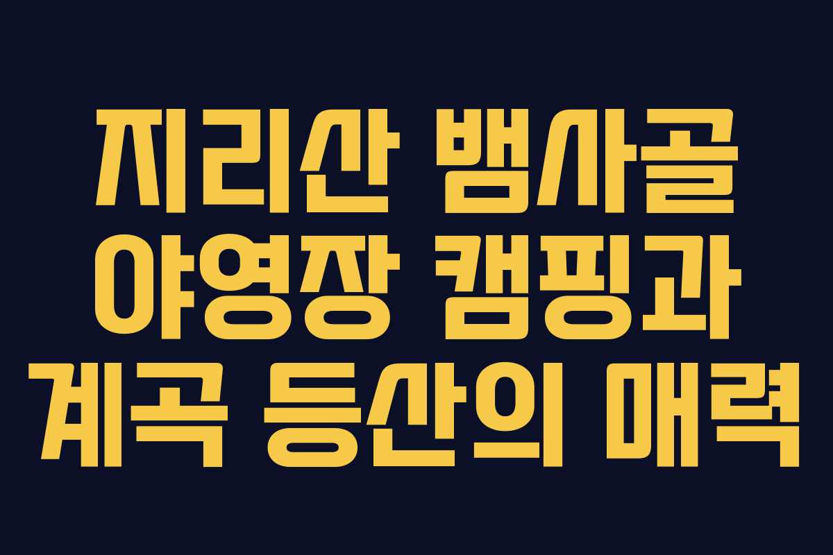 지리산 뱀사골 야영장은 자연 속에서의 힐링과 캠핑을 원하는 이들에게 적합한 장소입니다. 이곳은 캠핑 애호가들 사이에서 인기 있는 명소로, 아름다운 계곡과 자연경관을 즐길 수 있습니다.