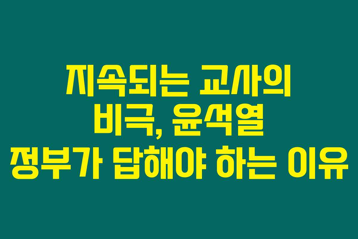 교사들이 계속해서 생명을 잃고 있는 현 상황에 대해 깊이 생각해본 적이 있나요? 최근 교사들이 잇달아 자살하면서 우리 교육의 현실에 대한 경각심을 일깨우고 있습니다. 아래를 읽어보시면 윤석열 정부가 이 문제를 해결하기 위한 조치를 취해야 하는 이유를 알게 됩니다.