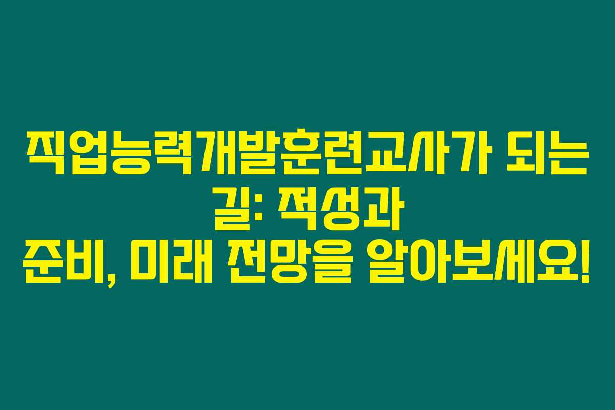 저는 이러한 정보를 통해 직업능력개발훈련교사가 미래의 가능성 있는 직업임을 느꼈어요. 이 직업은 단순히 교육을 넘어서 사람들의 가능성을 키우는 중요한 역할을 하고 있다는 점에서도 큰 매력을 느꼈답니다.