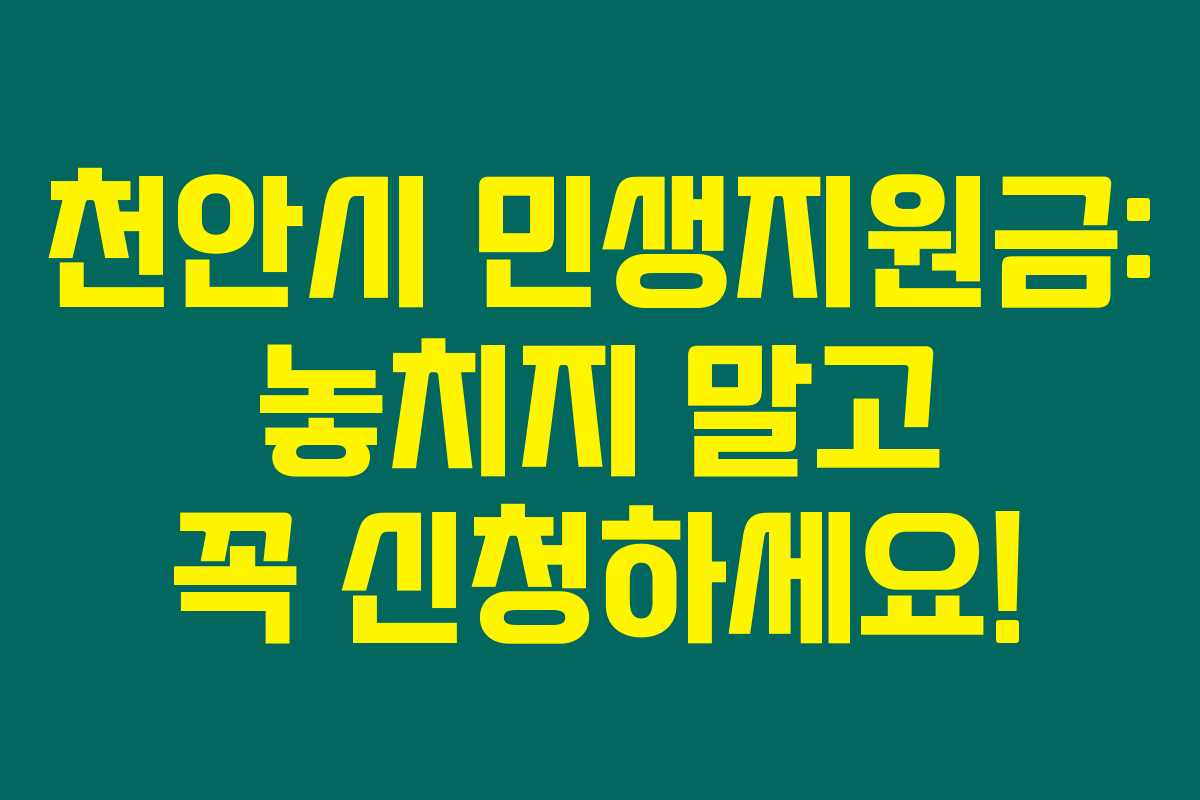 제가 직접 경험해본 바로는, 천안시는 경제적 어려움을 겪고 있는 시민들을 위해 민생지원금을 제공하고 있습니다. 지원금 신청 자격과 방법은 매우 간단하니, 아래를 읽어보시면 구체적인 정보를 확인하고 신청할 수 있습니다!