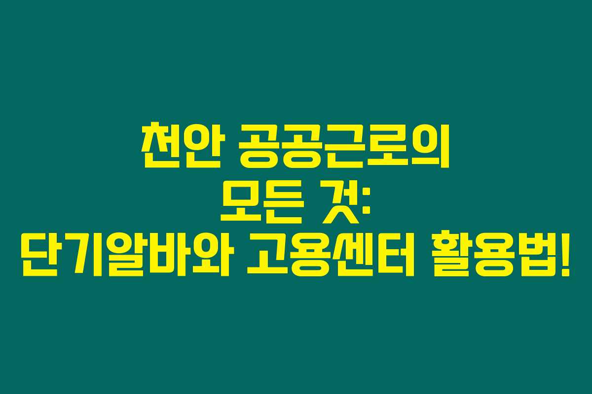 제가 알아본 바로는, 천안 공공근로는 많은 분들에게 일자리를 제공하고 경제적 도움을 주는 소중한 프로그램입니다. 공공일자리를 통해 단기알바를 구하고자 하시는 분들께서는 아래를 읽어보시면 유용한 정보가 될 것입니다. 2024년 2단계 모집과 관련해 제가 직접 리서치한 내용을 바탕으로, 천안 공공근로의 자격 조건과 신청 방법, 더불어 고용센터 이용법까지 자세히 설명드릴게요.