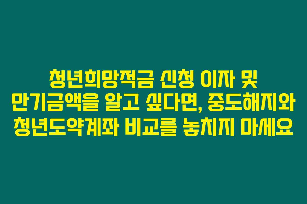 청년희망적금에 대하여 궁금하신가요? 만약 청년희망적금을 신청하고 싶거나 만기금액을 알고 싶으신 분이라면, 꼭 아래 내용을 확인해보셔야 해요. 왜냐하면, 중도해지와 청년도약계좌에 대한 정보도 함께 제공하니까요. 궁금한 점을 바로 확인해 볼까요?