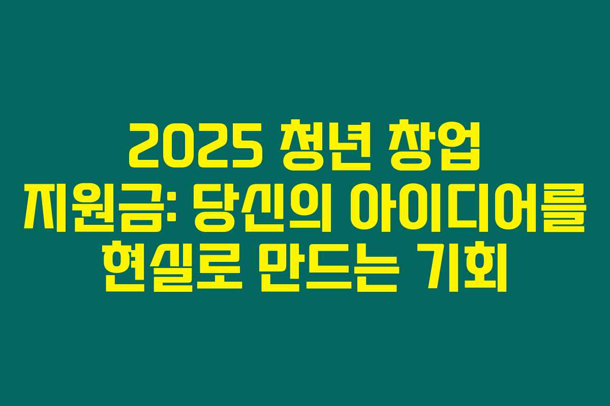 2025년 청년 창업 지원금, 지금 준비하세요! 다양한 기회가 기다리고 있으니 철저한 사업 계획 수립과 함께 이러한 지원 프로그램들을 적극 활용한다면, 청년 창업의 꿈을 현실로 만들 수 있습니다.