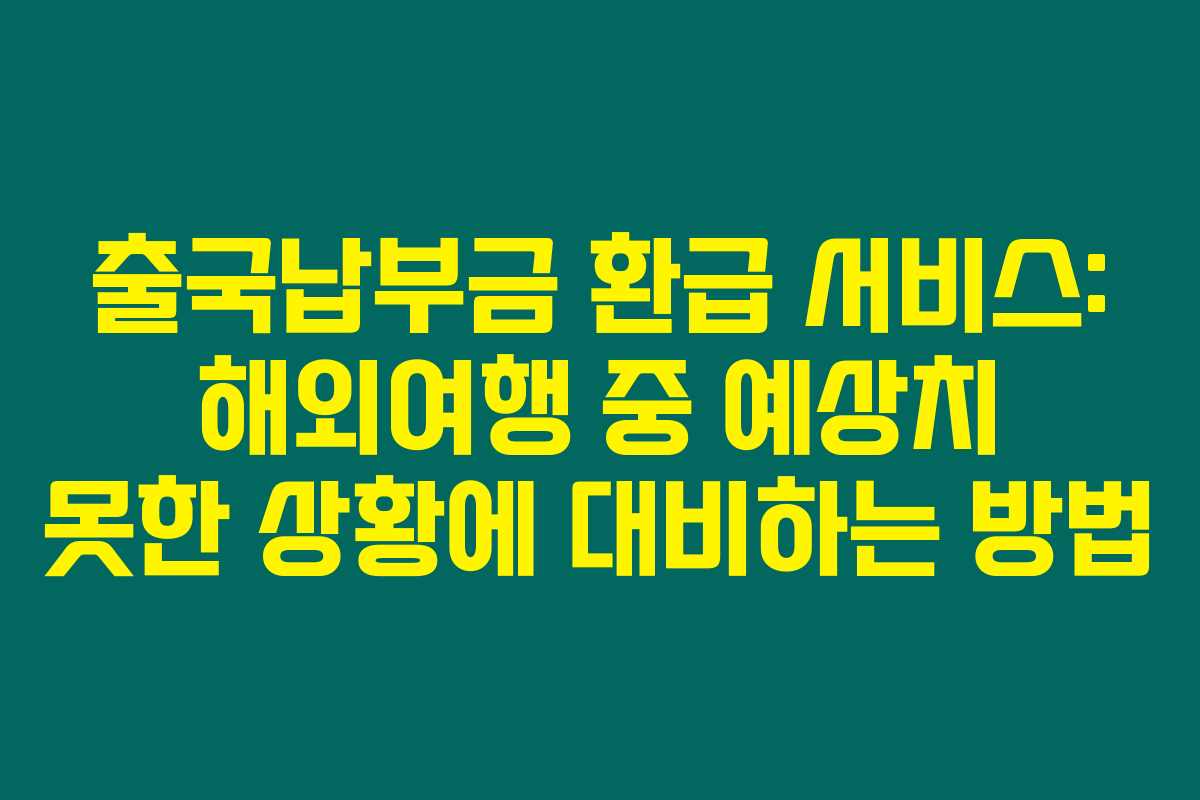 해외여행을 계획하는 순간, 설렘과 기대감이 가득하죠. 하지만 동시에, 예상치 못한 일이나 사정으로 인해 여행을 취소해야 할 경우도 생기기 마련이에요. 이런 순간에 꼭 알고 있어야 할 것이 바로 출국납부금 환급 서비스랍니다. 아래를 읽어보시면 이 서비스의 세부사항과 함께 환급을 받을 수 있는 조건을 자세히 알아볼 수 있어요.