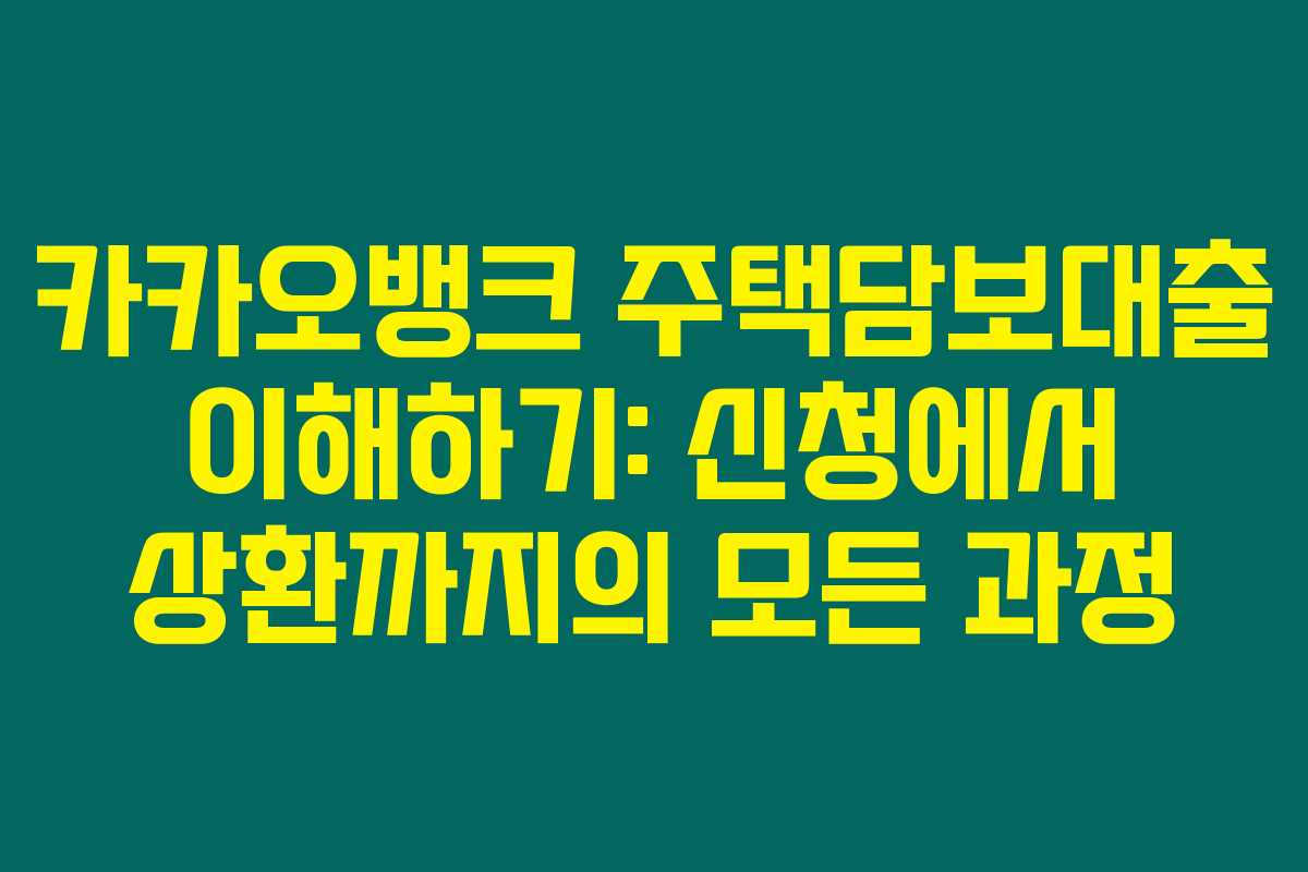 제가 직접 경험해본 결과로는, 카카오뱅크 주택담보대출은 주택 구매나 자금을 확보하려는 많은 사람들에게 매우 유용한 금융 서비스가 되더라고요. 온라인으로 손쉽게 신청할 수 있어 더욱 매력적이었습니다. 아래를 읽어보시면 이 대출의 신청 과정부터 상환 방법까지 자세히 알아보실 수 있습니다.