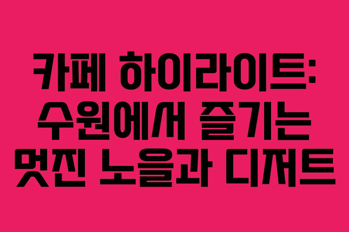 카페 하이라이트는 특별한 뷰와 훌륭한 음료, 디저트로 여러분을 맞이합니다. 수원에 방문할 계획이 있다면 꼭 들러보시기 바랍니다!