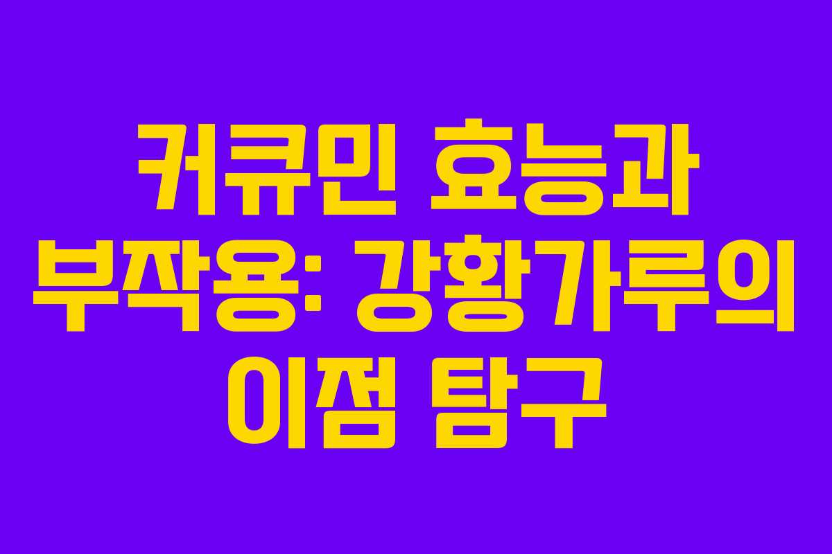 커큐민은 다양한 건강 이점을 제공하지만, 올바른 섭취와 주의가 필요합니다. 건강을 위해 적절한 양을 지키고, 필요시 전문가와 상담하는 것이 중요합니다.