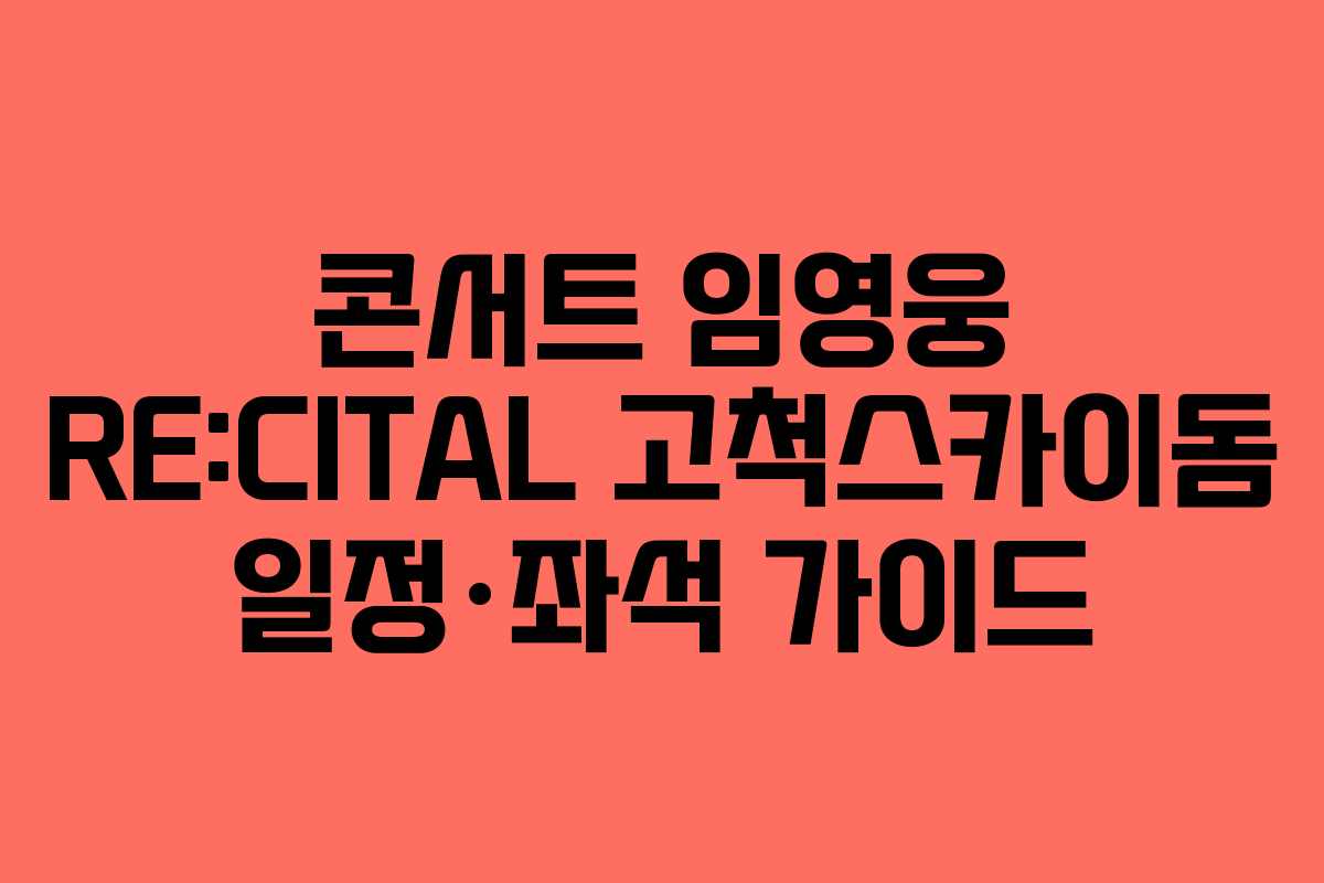 임영웅의 RE:CITAL이 고척스카이돔에서 연말연시 기간에 펼쳐집니다. 본 글은 공연 일정과 좌석 구성, 예매 팁, 현장 수령 절차를 한눈에 정리합니다. 아래를 읽어보시면 예매 포인트와 주의사항을 빠르게 파악할 수 있습니다.