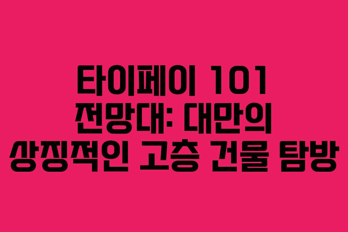 타이페이 101은 대만에서 가장 높은 건물로, 그 매력적인 디자인과 전망은 많은 관광객을 끌어모읍니다. 이 글에서는 타이페이 101의 입장 방법, 전망대에서의 경험, 그리고 그 독특한 구조물에 대해 자세히 알아보겠습니다.