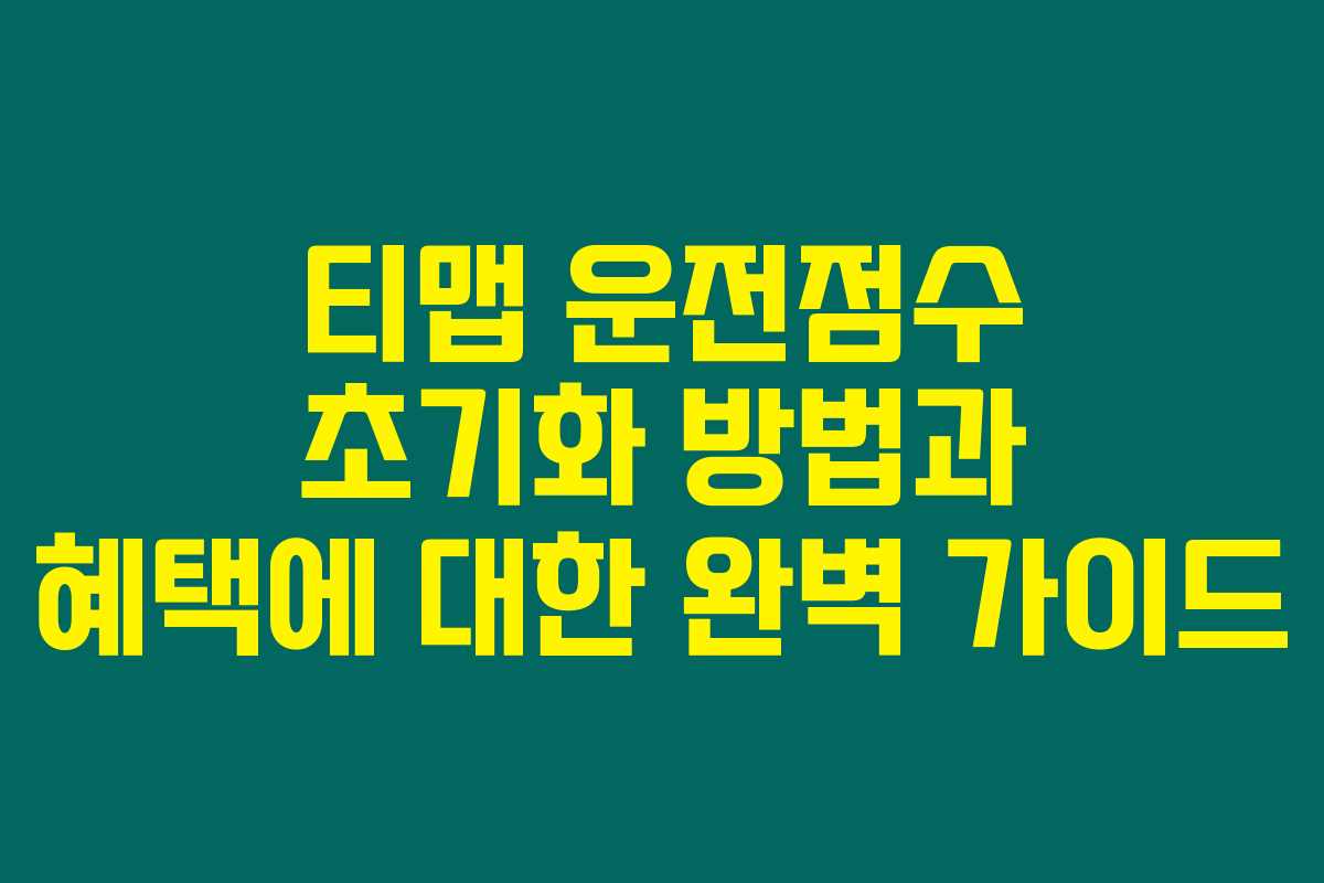 제가 직접 체크해본 바로는, 점수를 초기화하고 싶다면 간단한 절차를 통해 가능합니다. 티맵에서 제공하는 초기화 방법은 회원 탈퇴 후 재가입하는 것입니다.