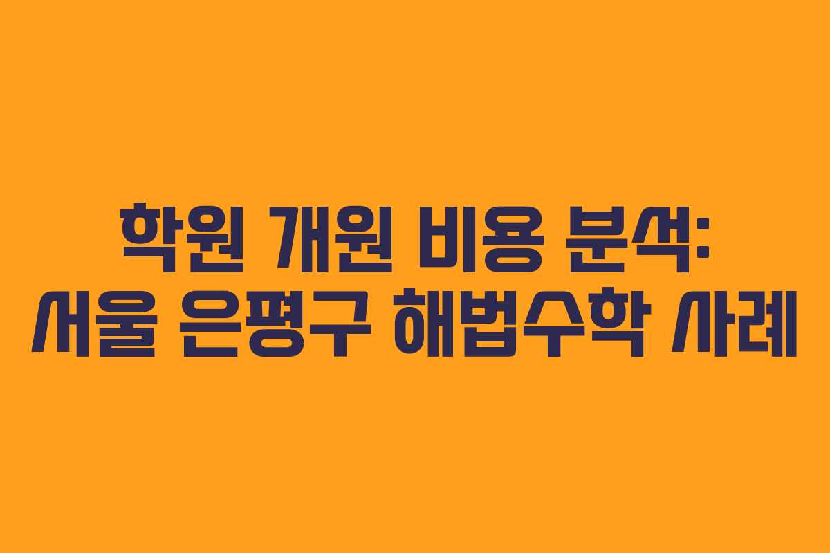 서울 은평구에 위치한 해법수학 학원의 개원 비용에 대해 자세히 살펴보겠습니다. 학원 운영을 고려하는 분들에게 유용한 정보가 될 것입니다.