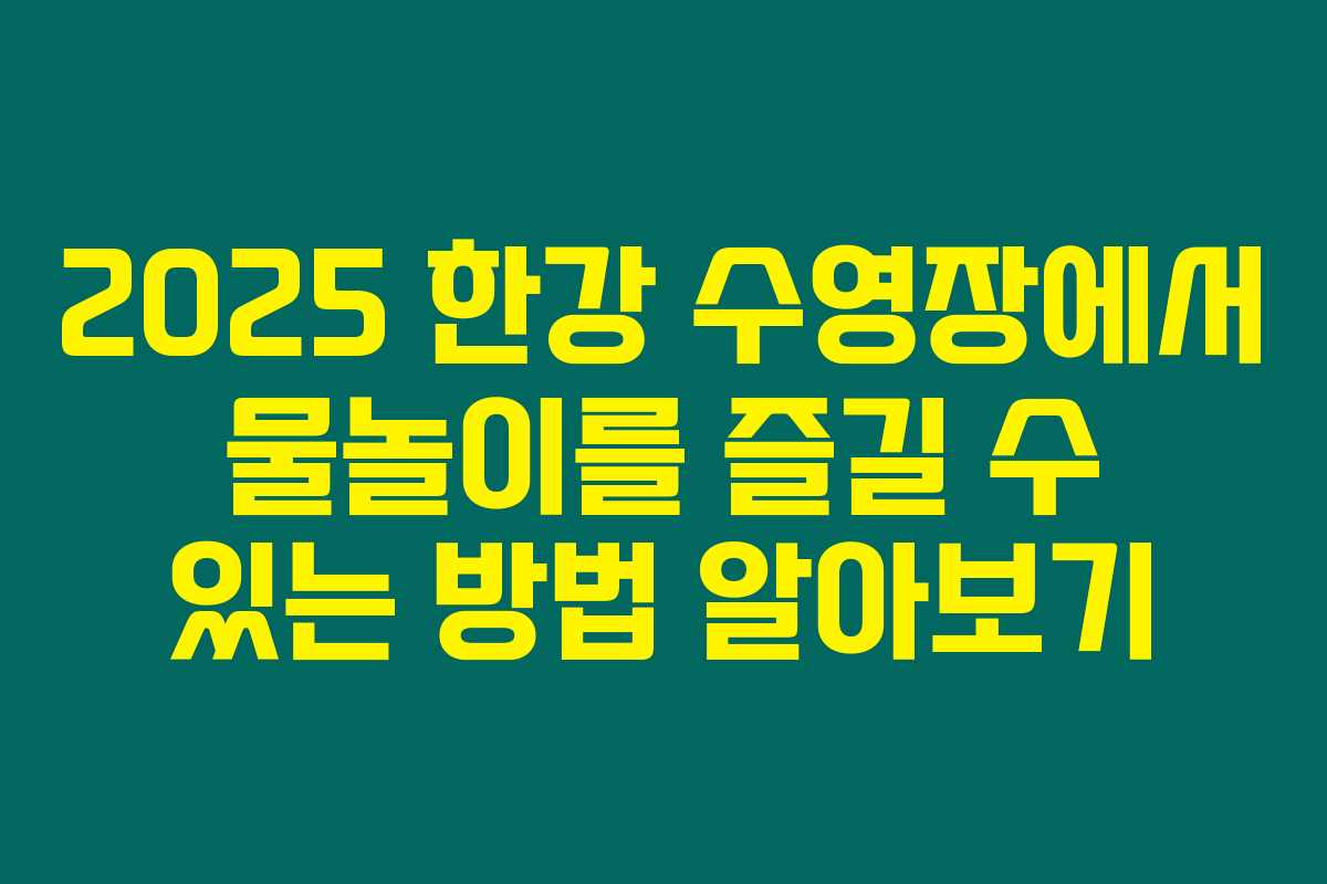 한강 수영장에서 안전하게 즐거운 여름을 보낼 수 있도록 꼭 필요한 정보를 전해드렸어요. 물놀이장과 수영장에서 시원한 여름을 만끽하세요!