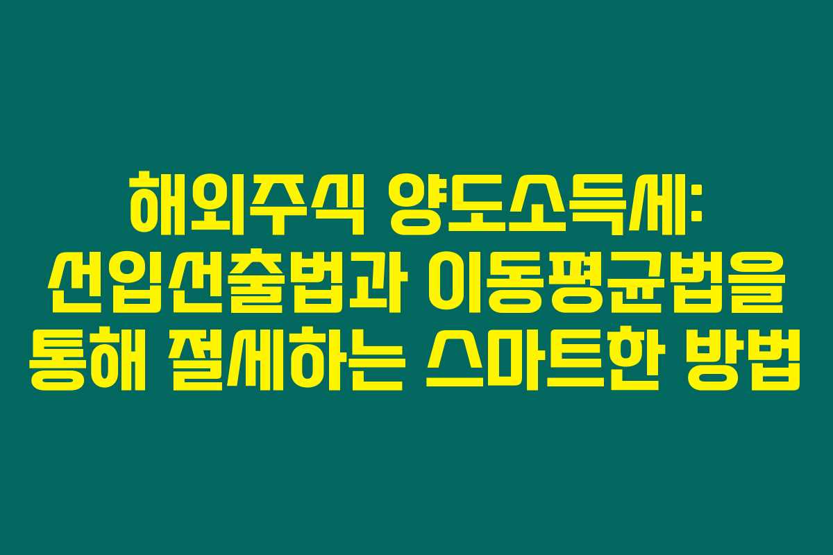 제가 직접 경험해본 결과로는 해외주식 투자 시 양도소득세 계산 방식인 선입선출법과 이동평균법은 매우 중요해요. 이번 글에서는 이 두 가지 방법을 통해 해외주식 양도소득세를 어떻게 계산하고 절세할 수 있는지에 대해 자세히 알아보도록 할게요.