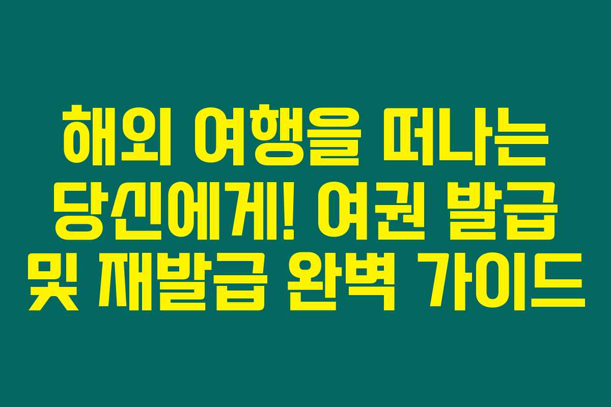 해외에서 여권을 잃어버리는 것은 정말 난감한 상황이겠지요. 제가 직접 조사한 바로는 많은 사람들이 이 문제로 인해 여행을 즐기지 못하는 경우가 있었습니다. 하지만 걱정하지 마세요! 여권 재발급 역시 그리 어렵지 않답니다.