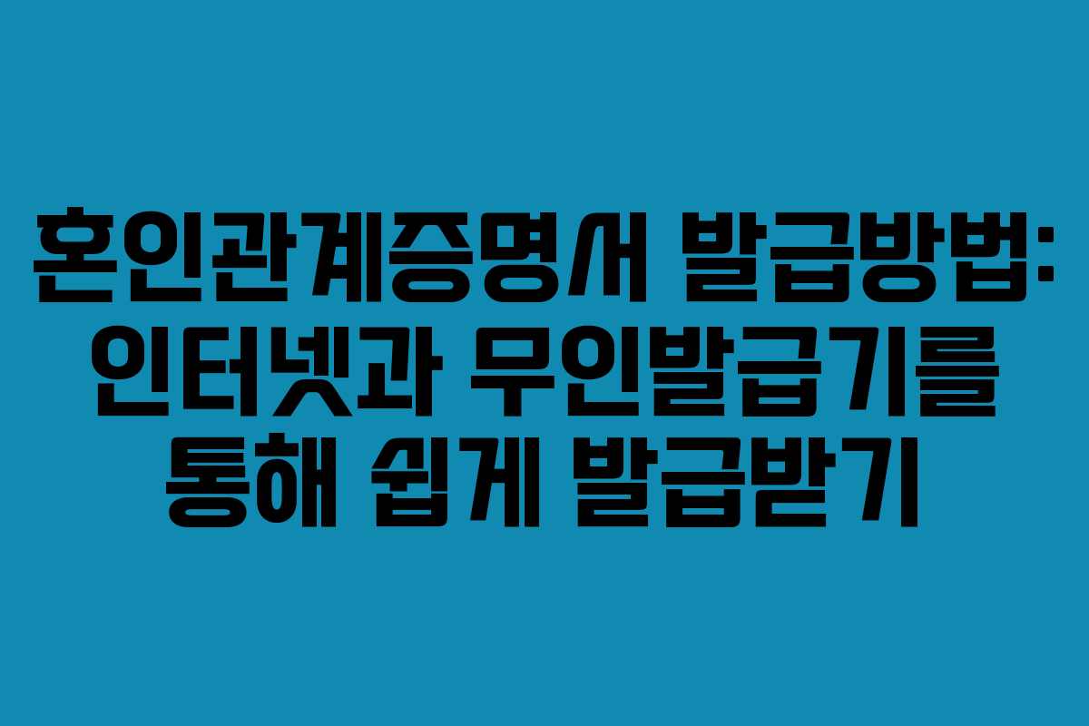 혼인관계증명서는 정부기관이나 금융기관에서 가족과 관련된 서류를 제출할 때 필요한 중요한 문서입니다. 이 증명서는 이제 인터넷이나 무인발급기를 통해 간편하게 발급받을 수 있습니다. 이 글에서는 두 가지 방법을 통해 혼인관계증명서를 발급받는 구체적인 절차를 안내드립니다.