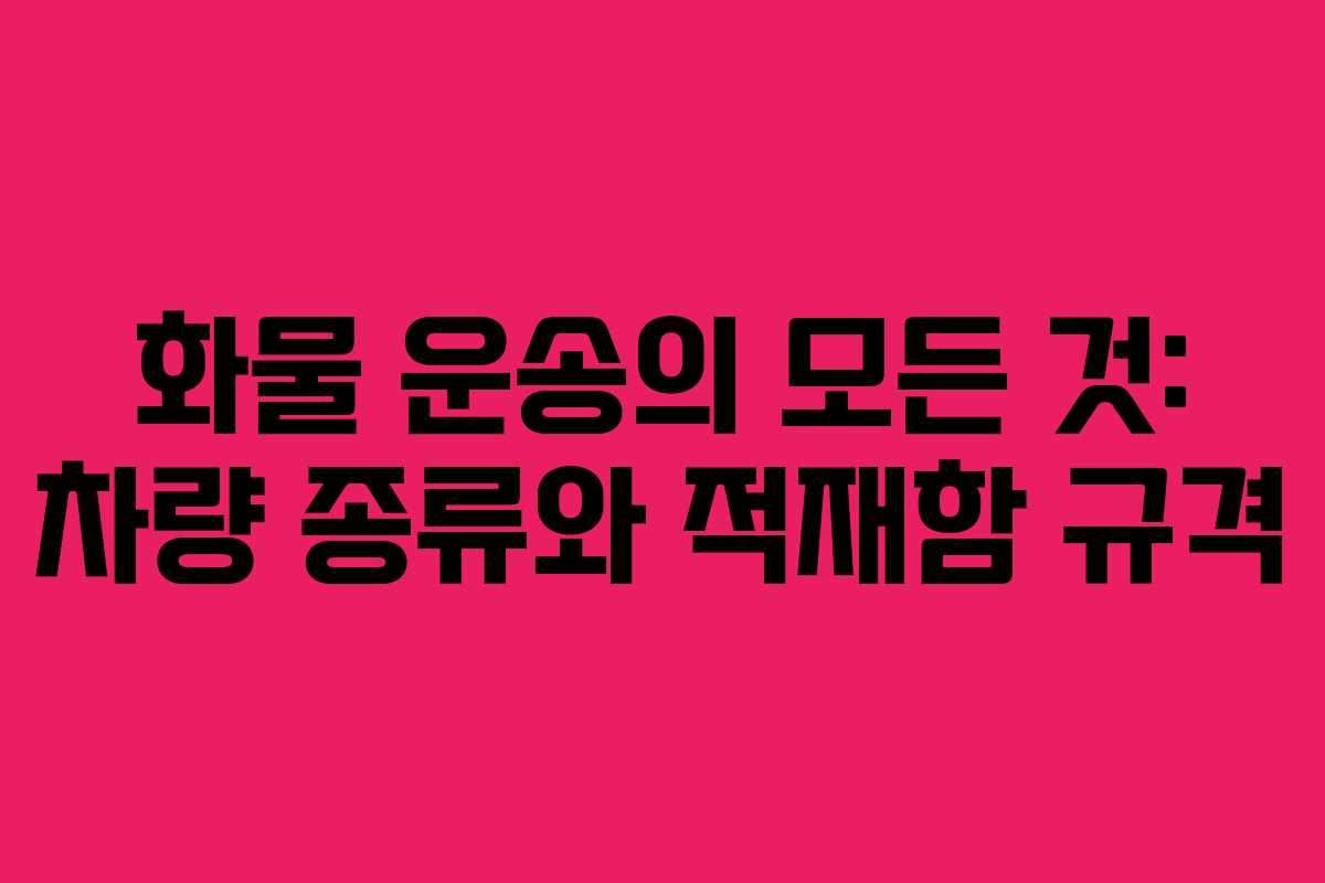 화물 운송은 다양한 필요를 충족시킬 수 있는 서비스입니다. 차량의 종류와 적재함 규격을 잘 이해하고, 필요한 경우 전문가와 상담하여 최적의 선택을 하시기 바랍니다.