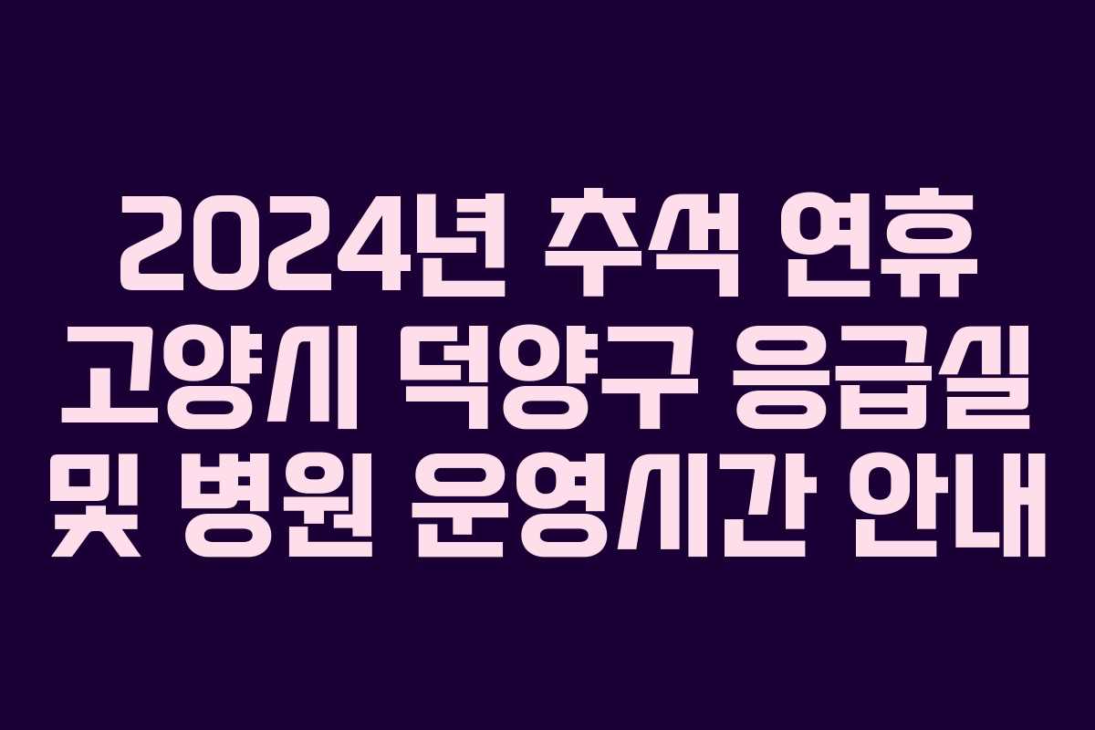 2024년 추석 연휴 동안 고양시 덕양구의 응급실과 병원, 약국의 운영시간을 미리 확인하여, 응급 상황에 대비하고 건강을 유지하는 것이 중요합니다. 이 글에서는 고양시 덕양구에서 연휴 동안 문을 여는 의료기관의 정보를 제공합니다.