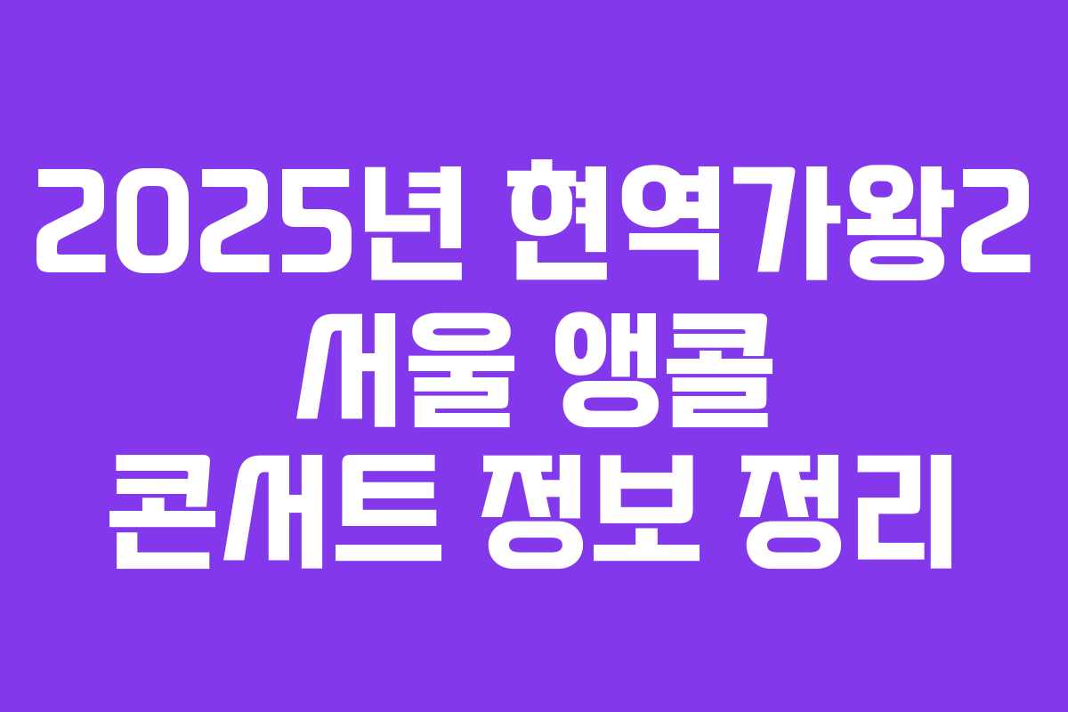 2025년 현역가왕2의 앵콜 콘서트가 서울에서 특별한 무대로 여러분을 초대합니다. TOP7 멤버들이 준비한 마지막 공연을 놓치지 마세요. 본 글에서는 티켓 예매 일정, 공연 정보, 출연진, 굿즈, 주차 정보 등 중요한 사항을 정리했습니다.