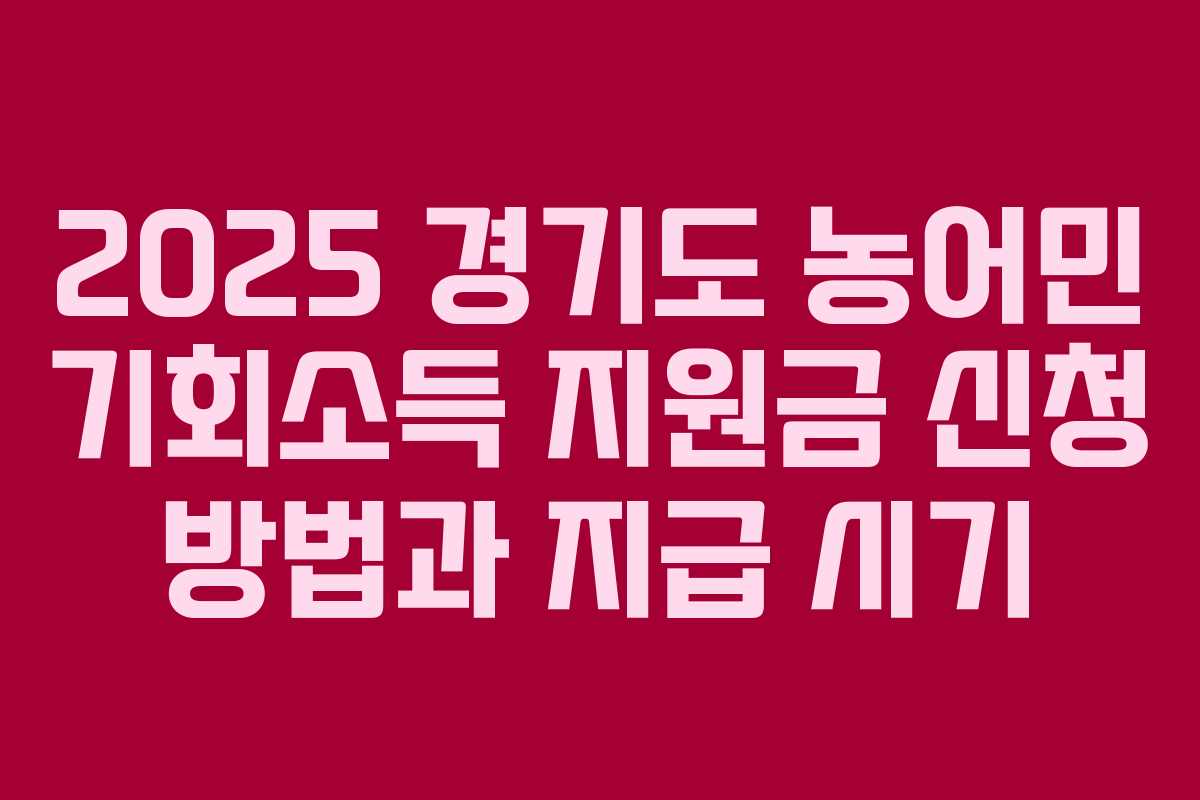 농어민 기회소득 지원금은 경기도에 거주하며 농어업 경영체에 등록된 농어민에게 지급됩니다. 또한, 일정 기간 이상 거주 및 농수산물 생산 활동을 해야 합니다.