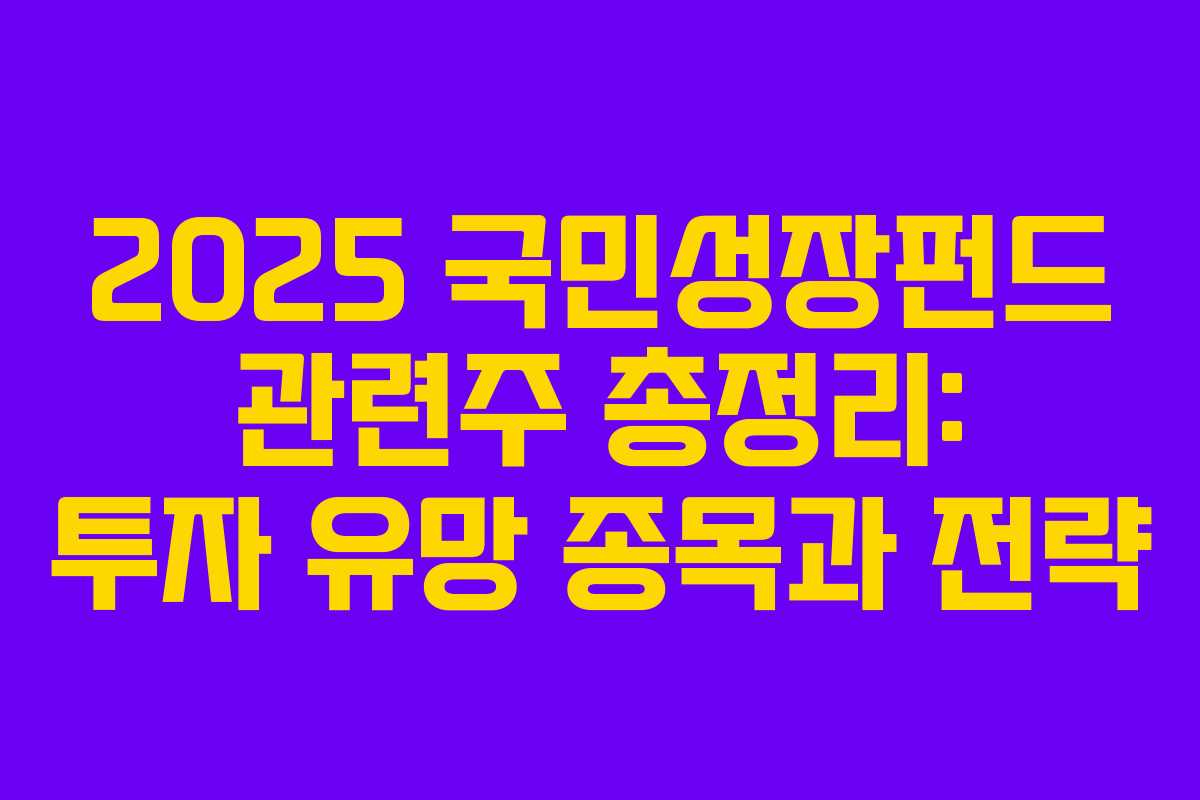 2025 국민성장펀드 관련주 총정리: 투자 유망 종목과 전략