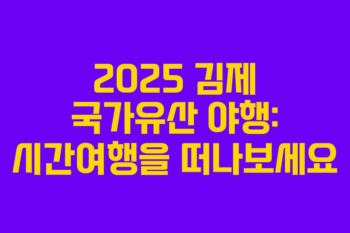 2025년 9월, 김제에서 펼쳐지는 국가유산 야행은 조선시대의 매력을 느낄 수 있는 특별한 축제입니다. 이 축제는 전통문화와 현대적 요소가 조화를 이루며, 방문객들에게 잊지 못할 경험을 제공합니다.